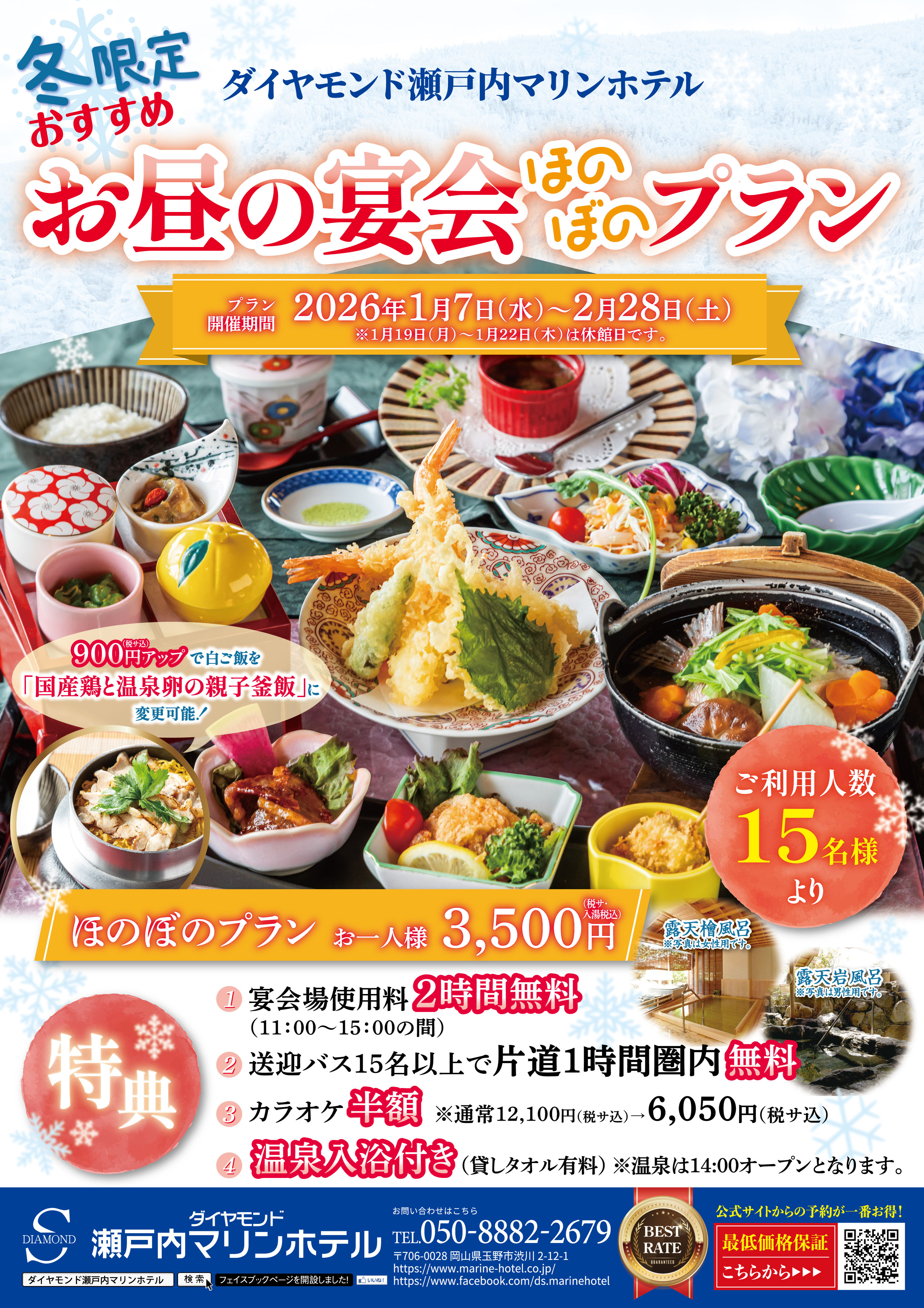 お昼の宴会プラン 次回も開催決定 (2026年1月7日(水)~2月28日(土)まで)