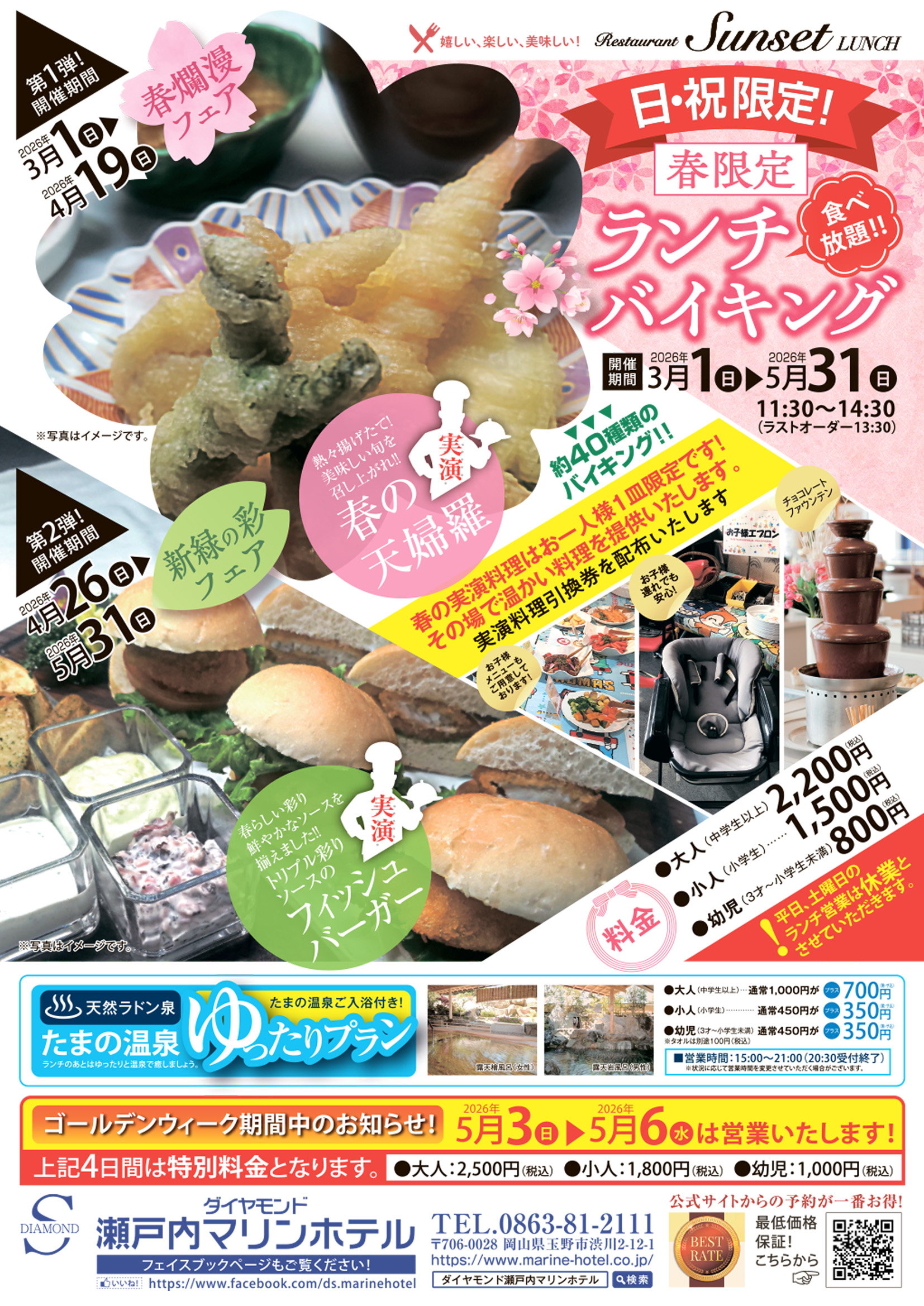 その他の春の味覚のメニューや約40種類のバイキング料理がありますので、